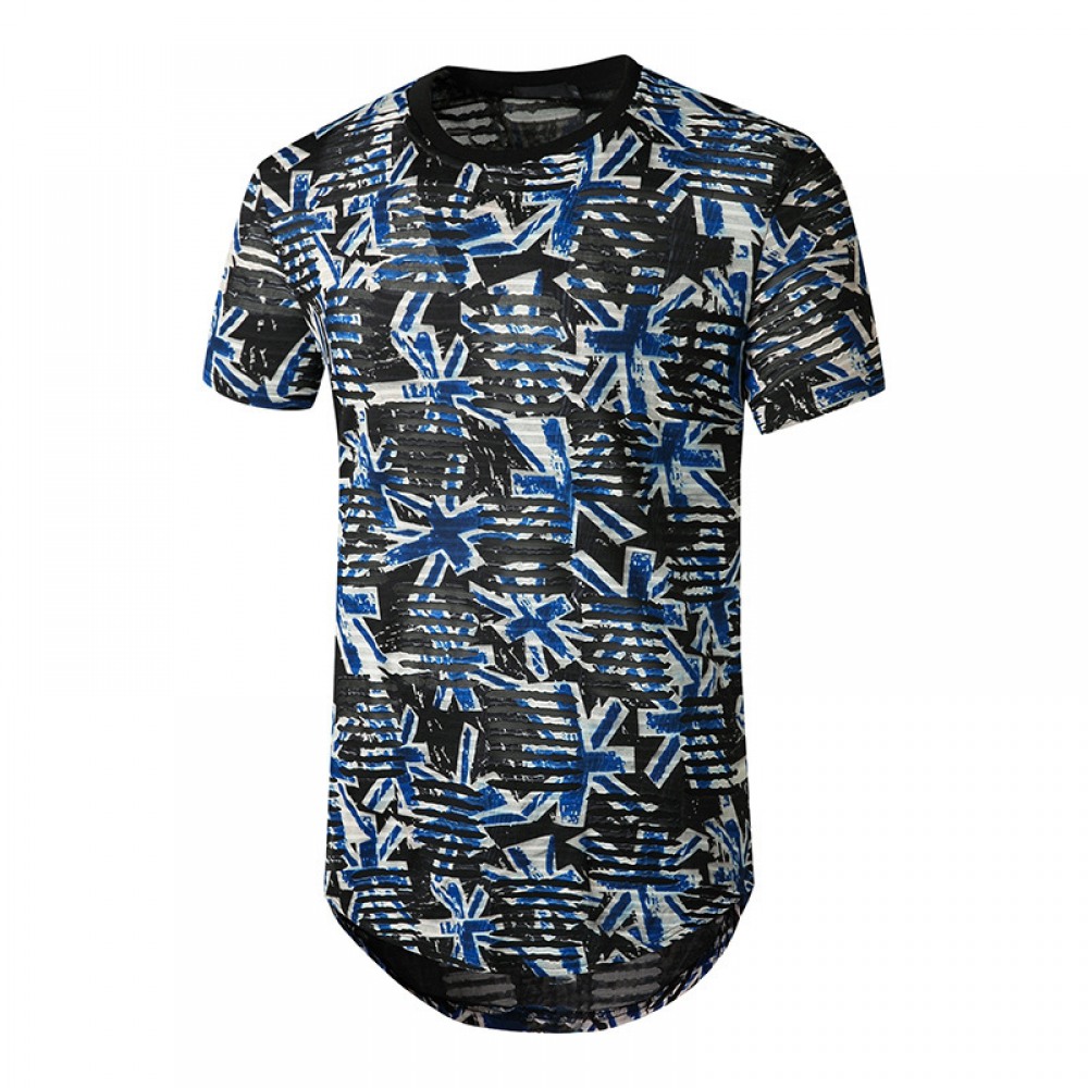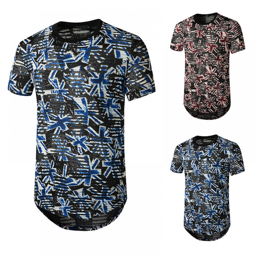 Men's Plus Size Open Smile Torn Hole Short-Sleeved Hipster Hip-Hop T-Shirt