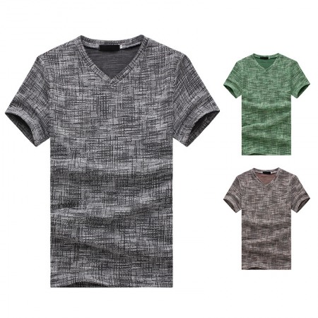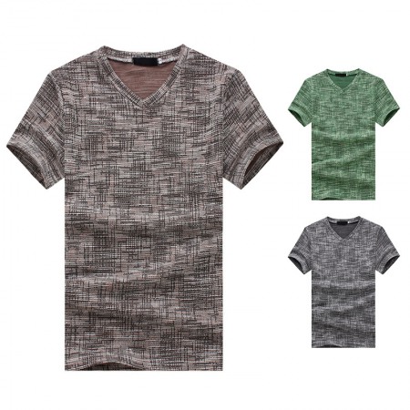 New Summer Men's Short-Sleeved T-Shirt Men's Contrast Striped Slim Casual T-Shirt