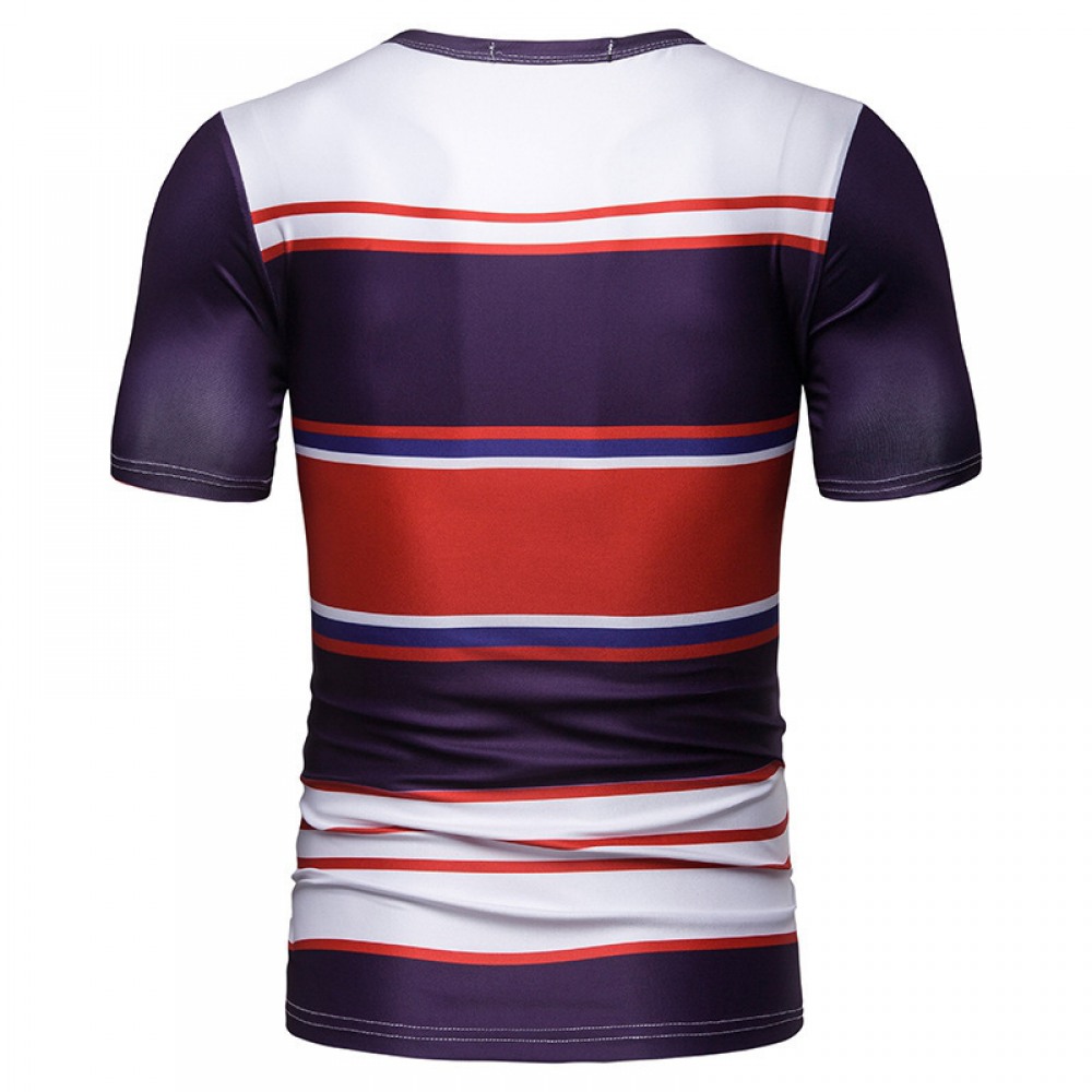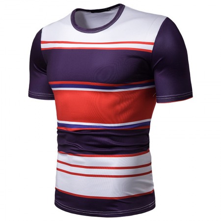 New Summer Men's Short-Sleeved T-Shirt Men's Contrast Striped Slim Casual T-Shirt