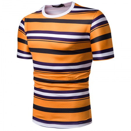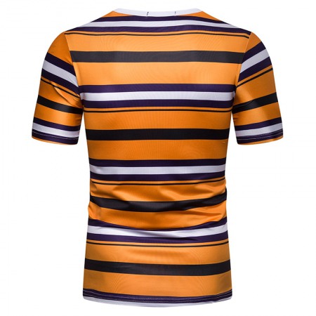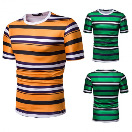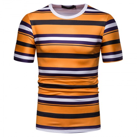 New Summer Men's Short-Sleeved T-Shirt Mens Contrast Striped Slim Casual T-Shirt
