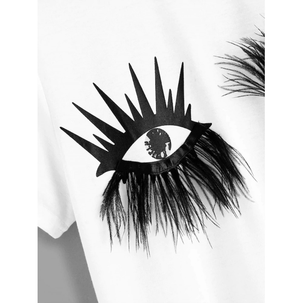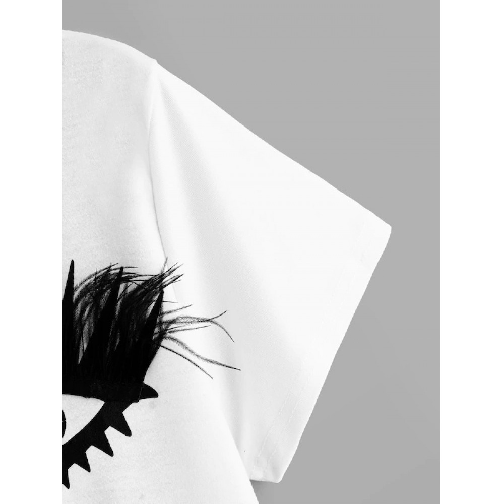 New Summer Short-Sleeved T-Shirt With Feather Decoration