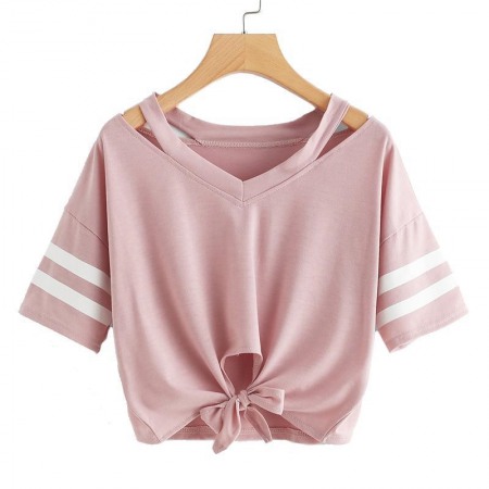 Women's New Style Bandage V-Neck Short-Sleeved T-Shirt